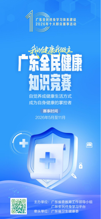 广东全民健康知识竞赛是全省规格最高的健康科普知识竞赛,打造“1+1+5+N”赛事体系,含1场启动仪式、1个线上打卡竞赛平台、5场线下活动、N场健康科普进社区乡村活动。一是内容实用,紧扣日常健康需求,覆盖全维度健康知识与技能,提升健康素养,倡导健康生活方式。二是形式多元,融合线上答题与线下竞赛,搭配特色活动打破学习时空壁垒。三是融合赋能,融入广东全民终身学习体系,为健康相关主体搭建双向赋能平台。